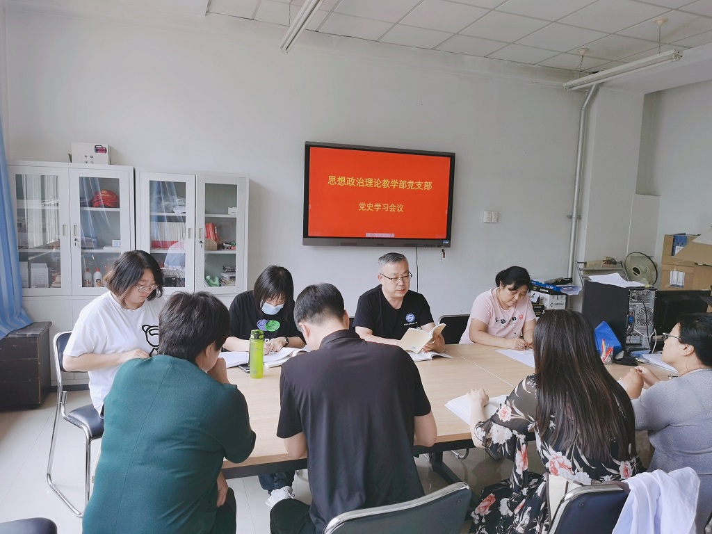 5月15日,思想政治理论教学部党支部召开支部全体大会,集中学习《中国共产党简史》、《论中国共产党历史》、《毛泽东邓小平江泽民胡锦涛关于中国共产党历史论述摘编》、《习近平新时代中国特色社会主义思想学习问答》的部分内容。