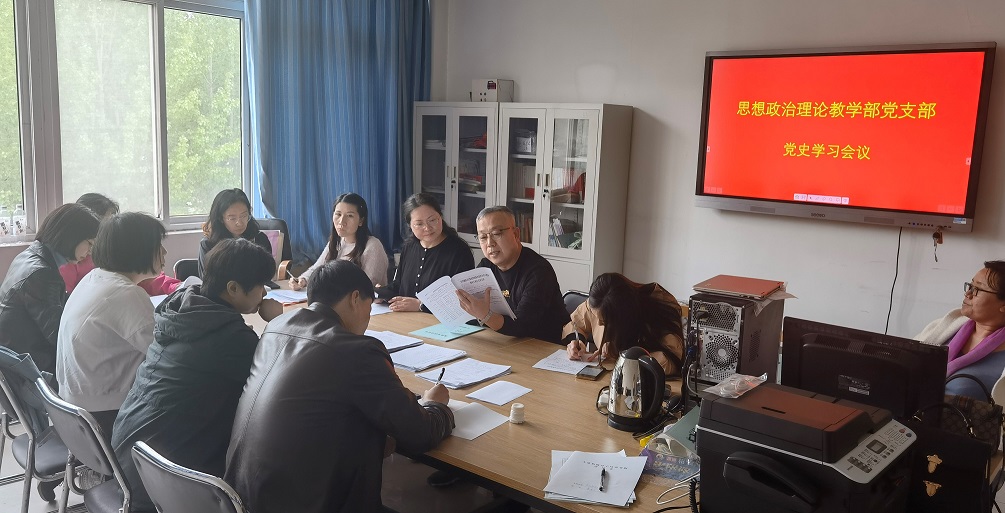4月23日,思想政治理论教学部党支部召开支部全体大会,集中学习《中国共产党简史》、《论中国共产党历史》、《毛泽东邓小平江泽民胡锦涛关于中国共产党历史论述摘编》、《习近平新时代中国特色社会主义思想学习问答》的部分内容。