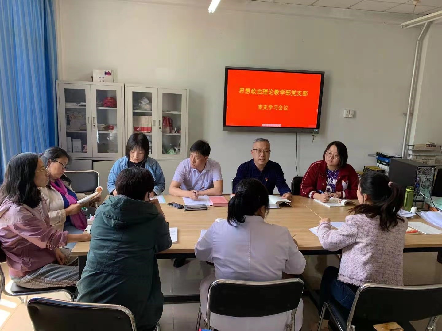 4月29日,思想政治理论教学部党支部召开支部全体大会,集中学习《中国共产党简史》、《论中国共产党历史》、《毛泽东邓小平江泽民胡锦涛关于中国共产党历史论述摘编》、《习近平新时代中国特色社会主义思想学习问答》部分内容。