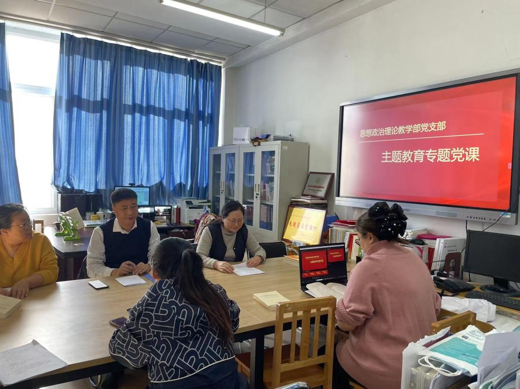支部书记王冬杰同志紧紧围绕《感悟思想伟力 凝聚奋进力量 全力推动主题教育在思政部党支部走深做实》这一主题,从深刻认识主题教育的重大意义、牢牢把握主题教育的总要求以及全力推动主题教育走深做实三个方面展开,强调习近平总书记强调,强国建设、民族复兴的宏伟目标今人鼓舞、催人奋进,我们这一代共产党人使命光荣、责任重大。这次主题教育,对全党既是一个“大学习”,也是一个“大动员”。面对“四大考验”、“四种危险”的风险挑战甚至是“难以想象的惊涛骇浪”,越需要我们加强理论武装,坚持真理,用思想之光照亮奋斗之路。学之愈深,方能知之愈明、信之愈坚、行之愈笃。我们要牢牢把握这次主题教育的根本任务,将“学、思、用”整体贯通,将“知、信、行”高度统一,把习近平新代中国特色社会主义思想转化为坚定理想、锤炼党性和指导实践、推动工作的强大力星,使全党始终保持统一的思想、坚定的意志、一致的行动、强大的战斗力,努力创造经得起历史和人民格验的实统,不断本取中国特色社会主义新的更大限利。