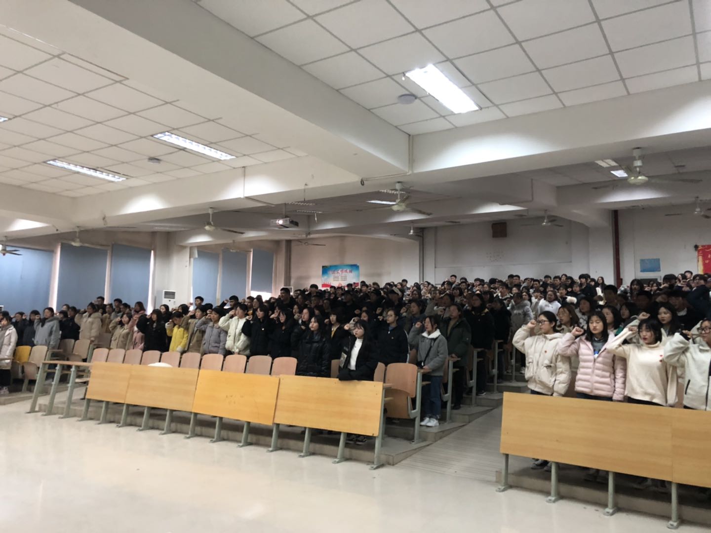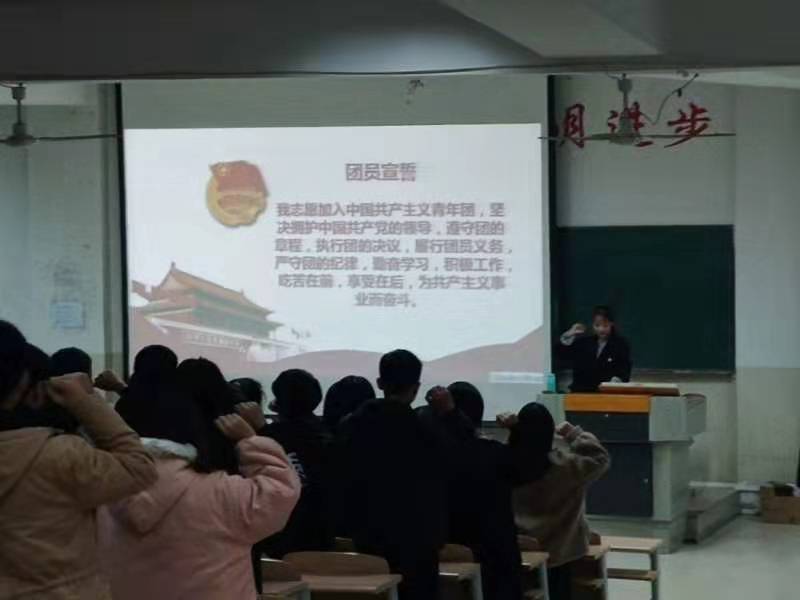 2019年11月22日,医技系团总支组织所有2019级团员在阶梯教室学习培训,由系团总支副书记程慧敏讲团课。