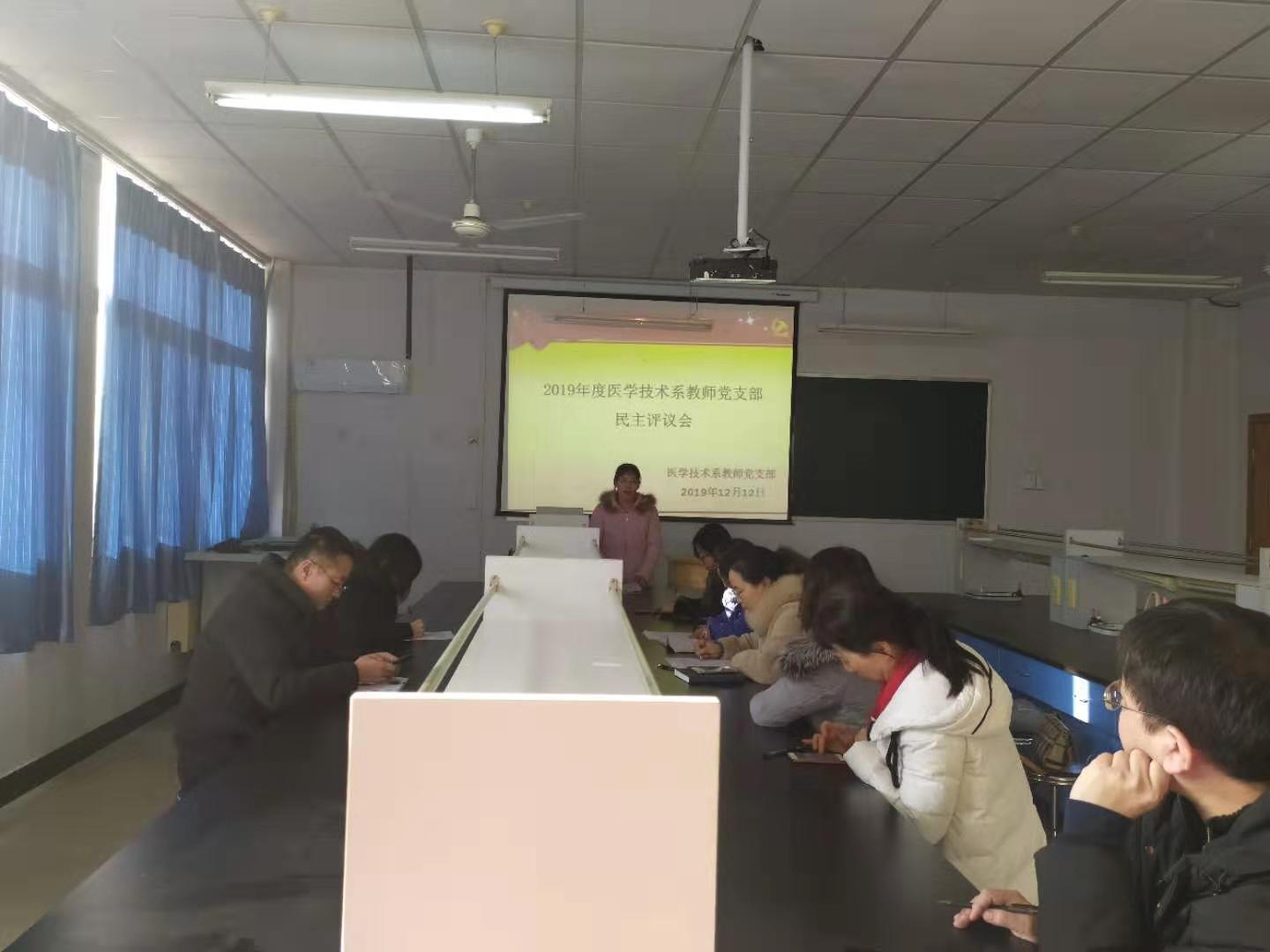 根据市直工委《关于市直机关基层党组织开好主题教育专题组织生活会和开展民主评议党员的通知》要求和学院党委部署安排,2019年12月12日中午,医学技术系教师党支部在5号实验¥309室召开了主题教育专题组织生活会和民主评议党员会议。