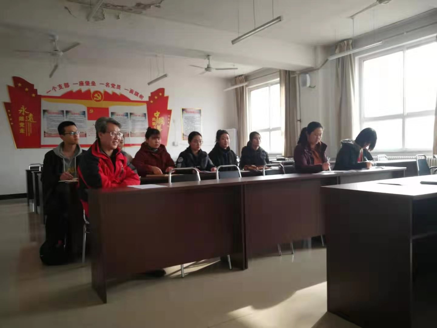 2019年12月10日,医学技术系学生党支部在支部书记刘淑金同志的主持下开展了本学年度的预备党员接收工作,医技系党总支负责人程继勇同志列席,参加本次会议的还有霍群、赵冬÷两名党员同志,李阳,李娇娇,邢慧瑶,李晨,史迪、武雅琳、张涵这七名拟接收预备党员同志。