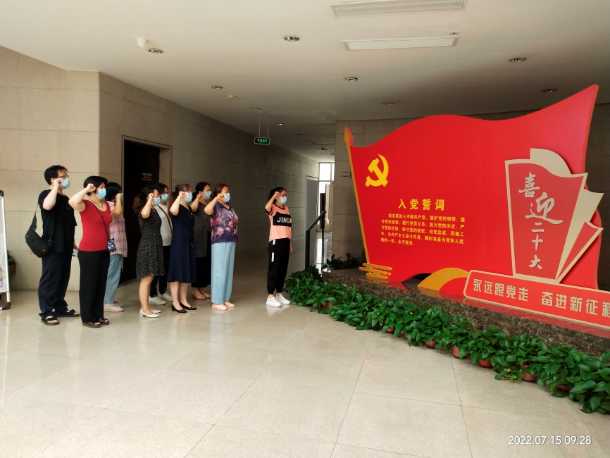 博物馆大厅内,全体党员在医学技术系党总支副书记马改霞的领誓下,面对鲜红的的党旗,高举右拳,庄严宣誓。“我志愿加入中国共产党,拥护党的纲领,遵守党的章程,履行党员义务……”。伴随着洪亮的宣誓声,党员们重温了自己对党立下的铮铮誓言,表达了为党的事业奋斗终生的决心。