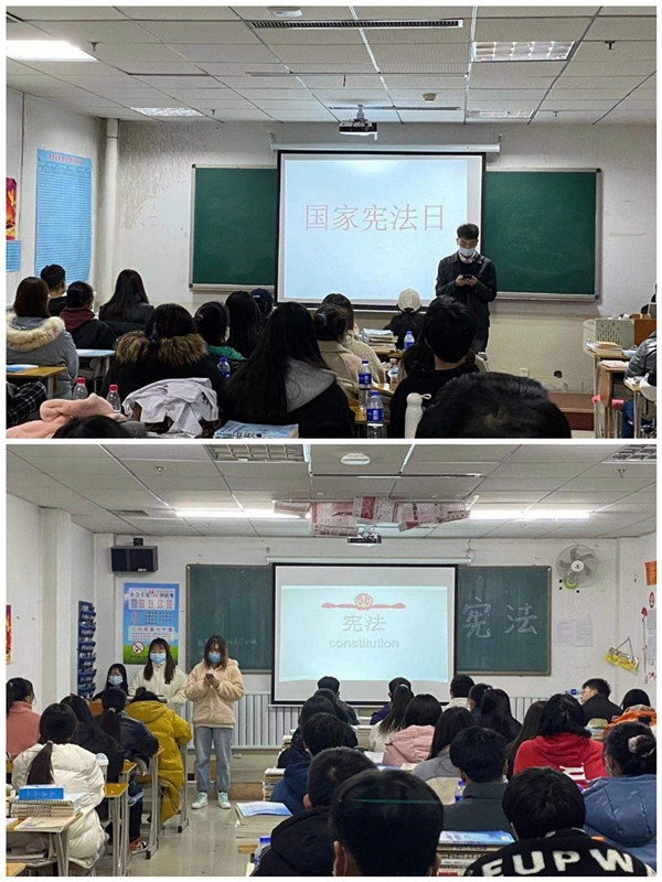 为了弘扬宪法精神,提升宪法的生命力和权威性,使同学们懂法,知法,守法。12月2日19:00,我院医学技术系各班在教室开展了以“深入学习宣传习近平法治思想,大力弘扬宪法精神”为主题的主题班会。活动由各班团支书主持。