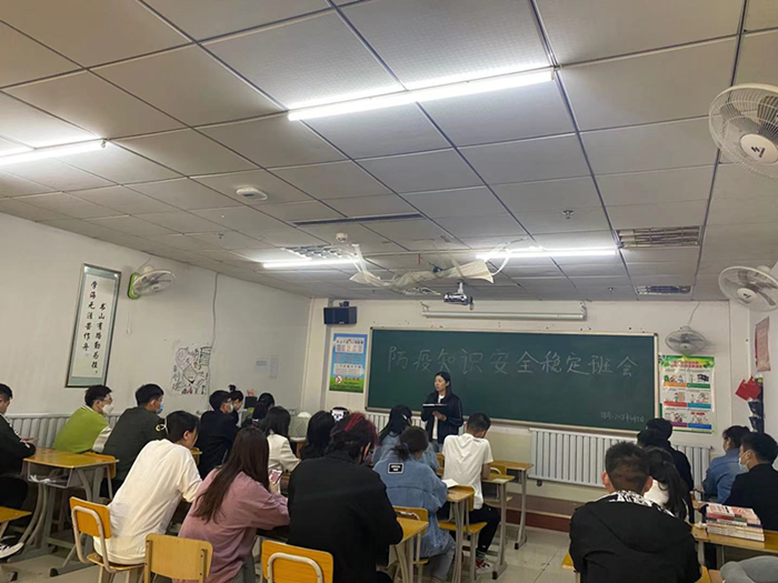 班会课上,各班班主任向学生们介绍当前疫情形势、防控知识,宣扬抗疫精神,引导学生们做好科学防护,珍惜来之不易的防疫成果。要求同学们主动遵守学校疫情防控的各项规定,做到勤洗手、勤消毒、戴口罩,适当锻炼,合理饮食,保证身体健康,让家长放心、让学校安心。