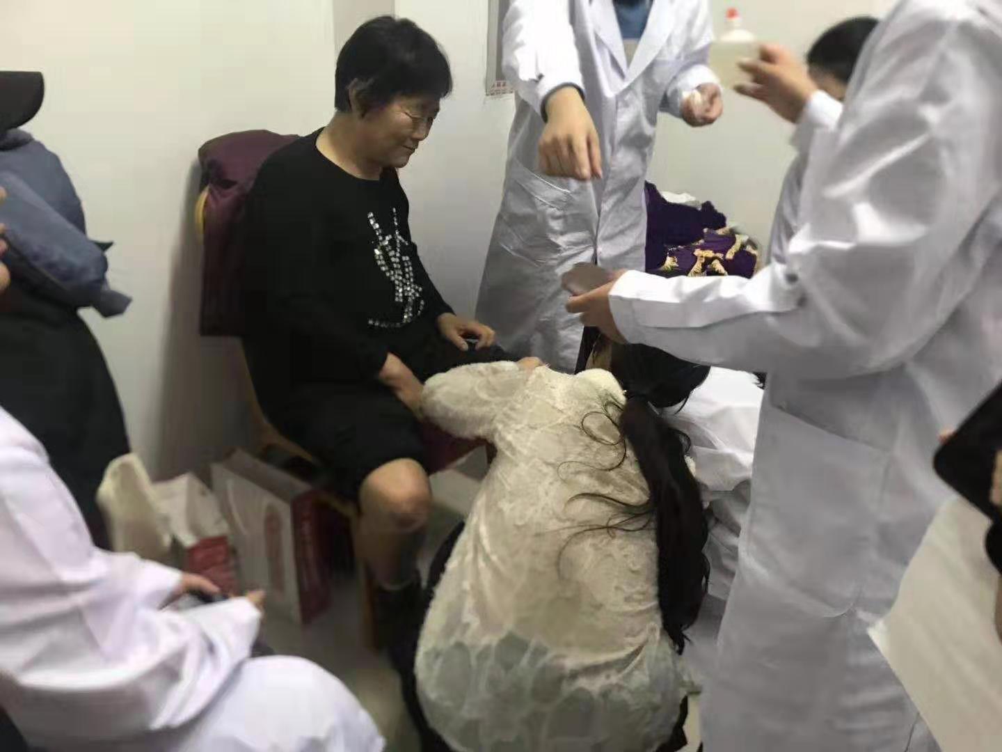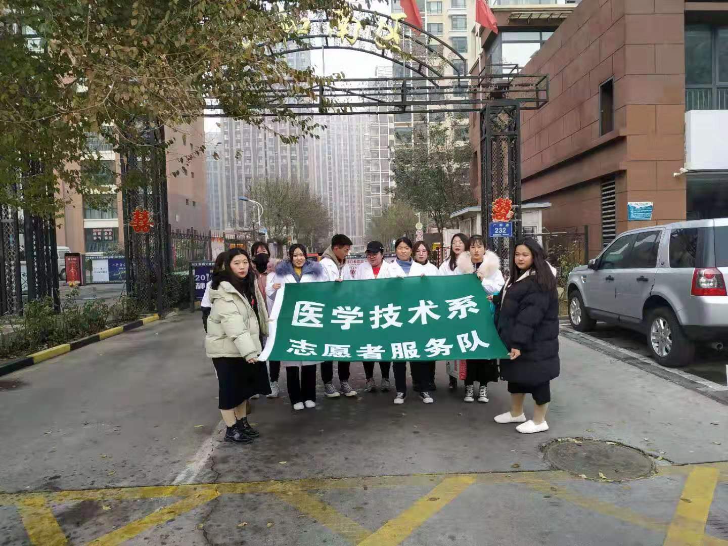 11月30日中午,阳光明媚,刚下了雪的城市焕然一新。医技系13名志愿者身穿白大衣,佩戴志愿者胸牌,搭乘公交车数十站,来到万和南小区,在小区举办刮痧义诊活动。
