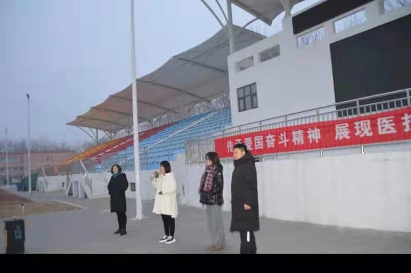 兼职辅导员霍老师作晨跑动员。她说,84年前的12月9日,中华民族生死存亡之际,在中国共产党领导下的爱国学生悲愤高呼:“华北之大,已经安放不得一张平静的书桌了!”轰轰烈烈的学生运动极大的促进了中华民族的觉醒,为抗战准备了思想、准备了人心、准备了干部,是中国历史上非常重要的纪念。84年后,广大同学已无需面对国土沦丧和流血牺牲,但作为新时代青年,依然重任在肩,是国家δ来建设和发展的中坚力量,希望同学们能够传承“一二·九”运动的爱国奋斗精神,展现医技学子的青春风采。