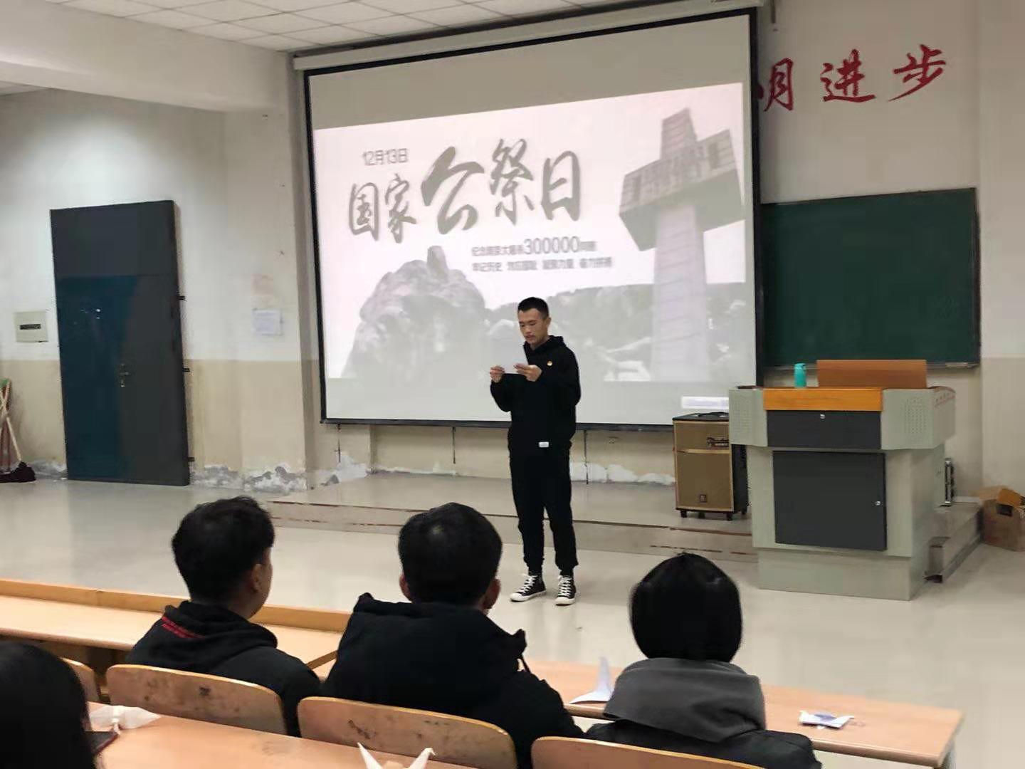 12月13日早晨7:30,阶二教室一片肃穆,医学技术系学工科、学生党支部在这里开展了以“铭记历史,勿忘国耻”为主题的纪念南京大屠杀国家公祭日活动,深刻缅怀南京大屠杀无辜死难者,深刻缅怀所有惨遭日本侵略者杀¾的死难同胞,深刻缅怀所有为中国人民抗日战争胜利付出生命的革命先烈和民族英雄。
