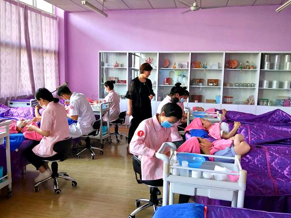 东方小屋祝靳玲老师应邀担任面部皮肤护理决赛的评委,就细节问题与指导教师深入交流。