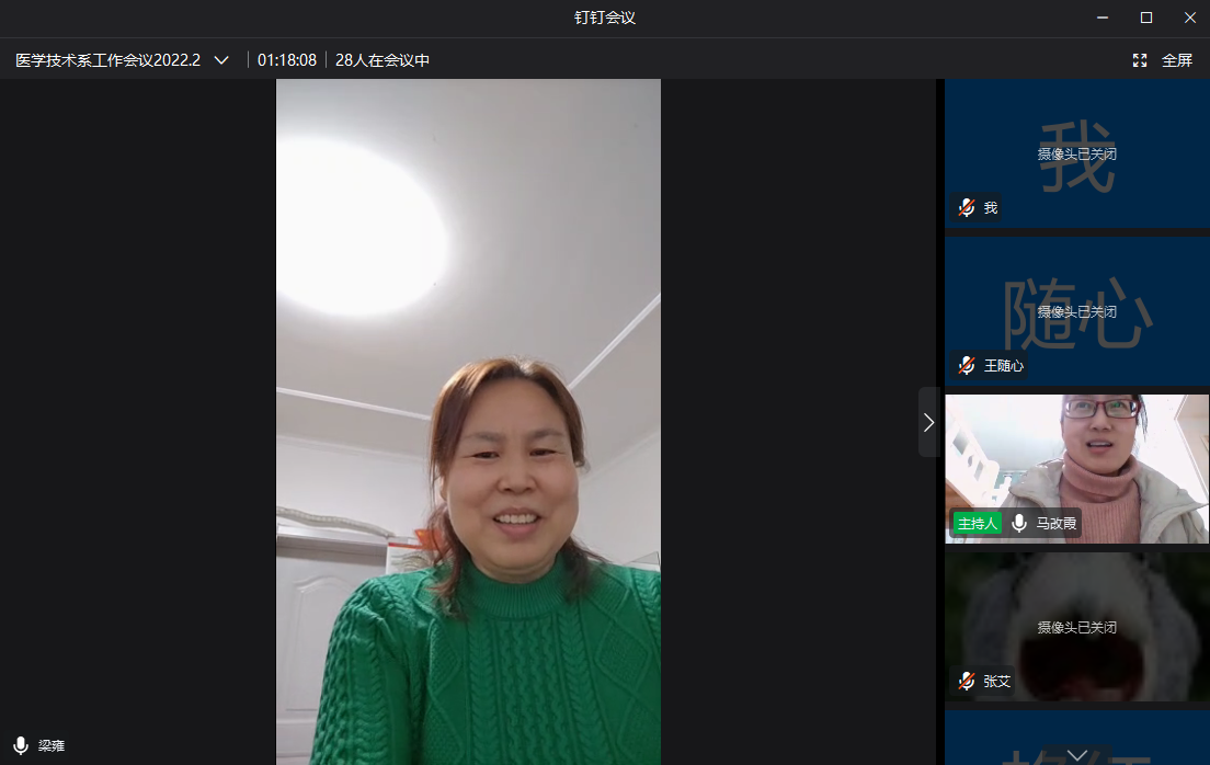 2022年2月21日,医学技术系通过钉钉会议形式召开了2022年春季新学期工作会议。会议由系书记梁雍主持,系副主任马改霞及全体教职工参加了会议。