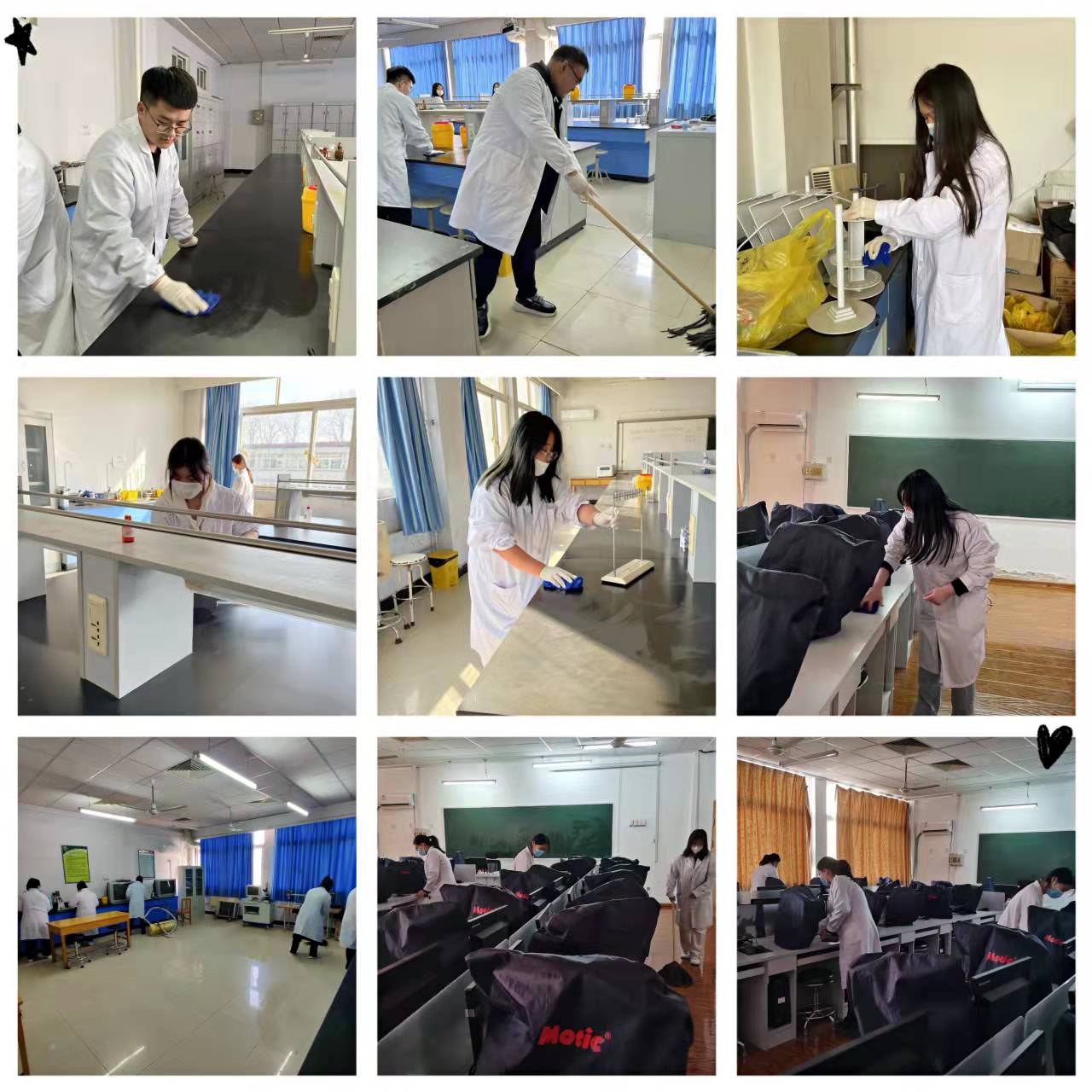 同学们拿起清扫用具,对临检、微生物、显微镜等共计10余个实验室、众多实验器材进行了清洁、整理,使整体环境焕然一新。同学们从中感受到劳动的快乐,领悟到雷锋精神的深刻内涵,也对专业仪器设备有了一定了解,收获颇丰。