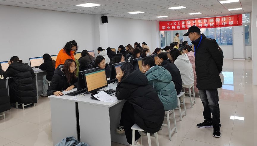 为贯彻落实《关于在院校实施“学历证书+若干职业技能等级证书”制度试点方案》(教职成〔2019〕6 号)、《关于推进1+X证书制度试点工作的指导意见》(教职成厅函〔2019〕19 号)文件精神,扎实推进“1+X”美容光电仪器操作职业技能等级证书试点工作,经过前期严谨细致的培训、练习,2024年11月30日,医学技术系举行了“1+X”美容光电仪器操作职业技能等级(中级)证书考核,2023级医学美容技术专业110名学生参加了考核。
