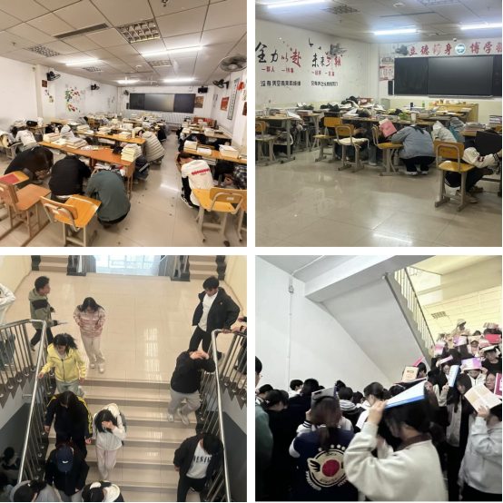 演练模拟突发地震场景,随着警报响起,教室内,学生们立刻以书包、书本护住头部,躲至课桌下方或墙角,遵照“黄金十二秒”的指导动作完成“伏地、遮挡、手抓牢”进行紧急避险。之后,在辅导员和学生志愿者的引导下,按照预定路线快速有序撤离至操场安全区域,撤离过程中,大家用手或物品护住头部,低姿前行,避免拥挤推搡。