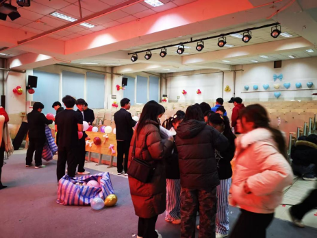 这边包着饺子,那边也没闲着。阶梯教室里,学工科老师们正指挥着一部分同学忙着装点联欢会的现场。有的吹气球,有的摆桌椅,同学们用自己的双手营造欢乐祥和的节日氛围,现场忙而有序,每个人的脸上都洋溢着幸福的笑容。