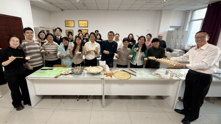 “老师,我们家包的饺子是方形的。”“老师,我们家包的是红油猪肉馅的。”“张老师,你看我会包花边饺子。”12月29日下午,医技系师生包饺子活动现场,来自全国各地的同学们你一言、我一语,边包饺子边和老师们聊着家乡的风俗习惯,活动现场欢声笑语,其乐融融。
