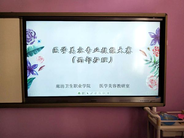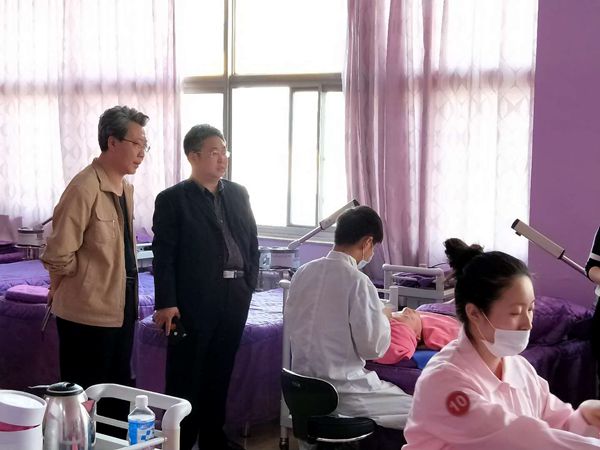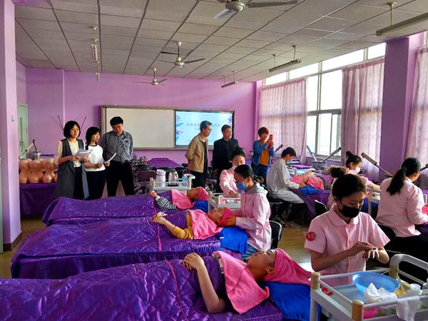 4月26日下午,医学美容技术专业在实训中心举办面部皮肤护理技能竞赛。医技系副主任程继勇、教务处教务科科长柴润国、学工科科长王亚奇、教学科副科长李二来及班主任李梦雅观摩比赛。