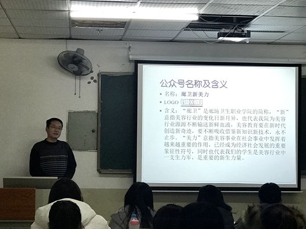 2017年12月14日下午,医学美容技术专业在现教中心211教室举行微信公众号发布仪式。专业带头人、美容教研室主任李二来主持发布会,美容教研室教师、医美专业在校生参加发布会。