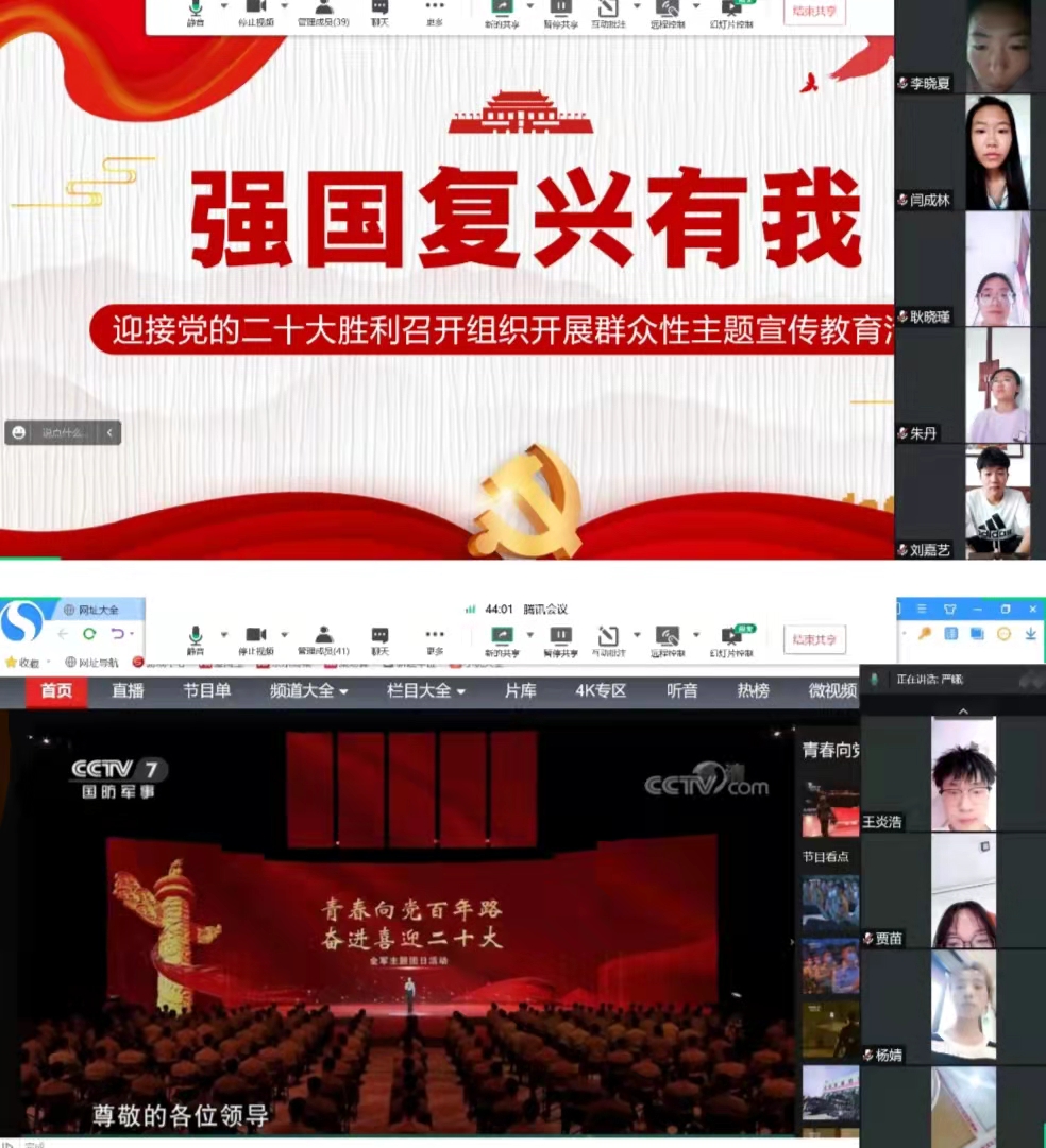 为深入贯彻落实《学院关于迎接党的二十大胜利召开组织开展“强国复兴有我”群众性主题宣传教育活动的方案》的要求,7月17日通过线上会议形式,医学技术系学工科在21级三个专业共9个班级举行了“四史”进课堂——“赓续红色血脉、强国复兴有我”主题班会,组织师生共同学习、宣讲党史、新中国史、改革开放史、社会主义发展史中的经典故事,激发学生们爱国热情,以饱满的热情向党的二十大献礼。
