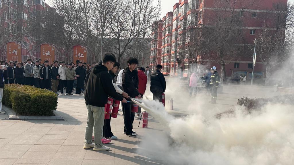 疏散演练结束后,受邀而来的消防员向师生们详细讲解了灭火器的种类、使用方法及注意事项,并现场演示了干粉灭火器的操作步骤。师生们认真聆听,积极参与互动,并分批进行了灭火器实操演练,亲身体验了灭火过程,掌握了灭火器的正确使用方法。