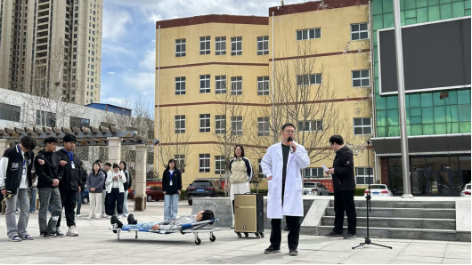 抵达预定地点后,校医院赵老师现场演示伤员救助、止血包扎、骨折固定等急救技能,重点讲解“黄金救援时间”的科学利用,师生代表在指导下进行了实操练习。