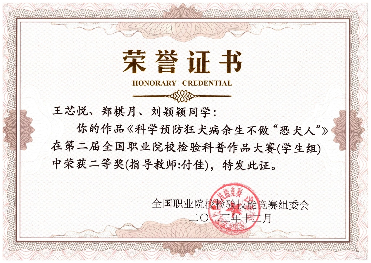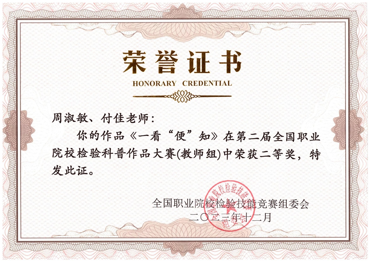第二届全国职业院校检验科普作品大赛二等奖