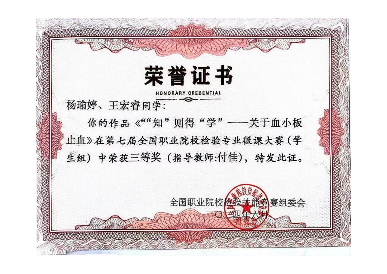 付佳老师指导学生获第七届全国职业院校检验专业微课大赛(学生组)三等奖