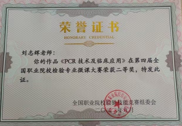 刘志辉老师获全国职业院校检验专业微课大赛二等奖