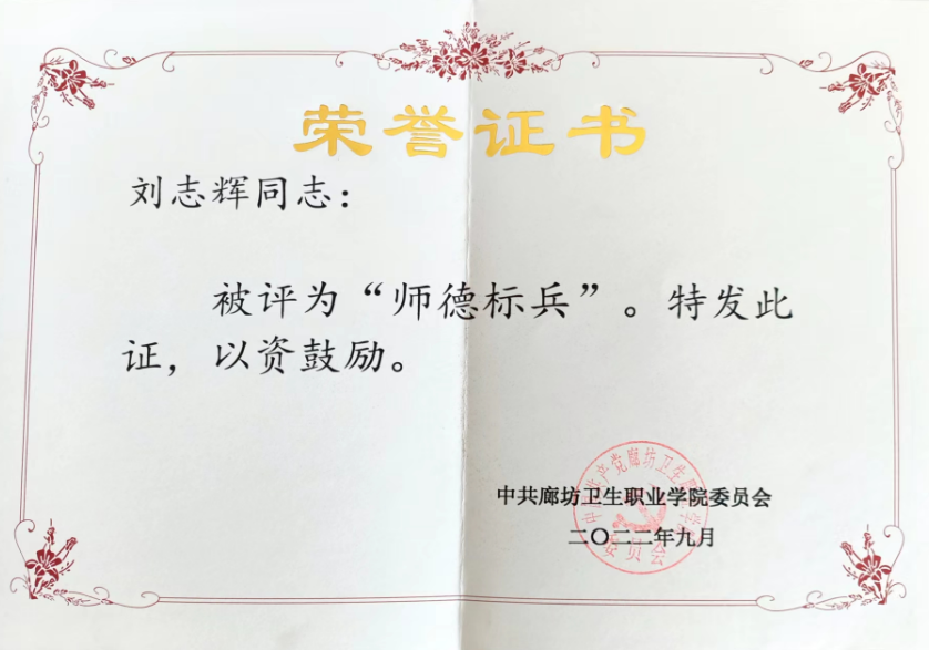 刘志辉老师获师德标兵称号