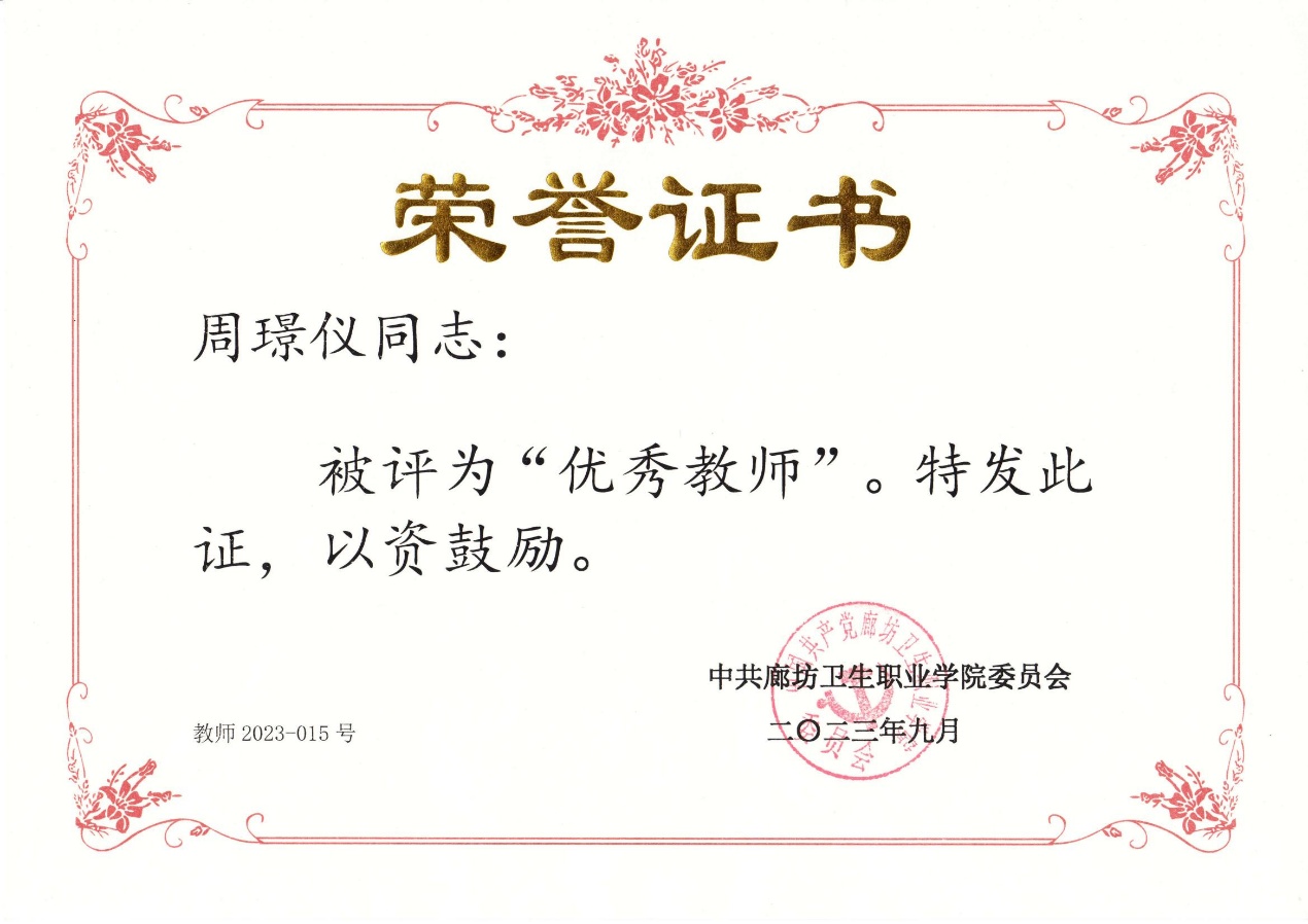 周璟仪,现任医学美容技术专业带头人,高校讲师、执业医师、高级美容师,目前主要承担《美容护肤技术》、《中医美容技术》、《美容文饰技术》等专业课程的教学,已发表专业论文4篇、参编专业教材1部,在编教材2部。