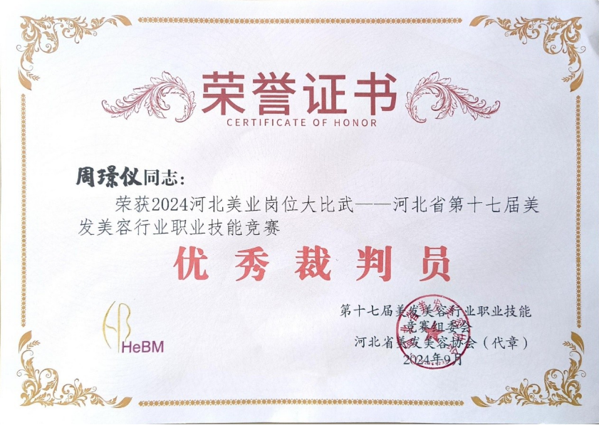 2024河北省第十七届美发美容行业职业技能竞赛被评为“优秀裁判员”