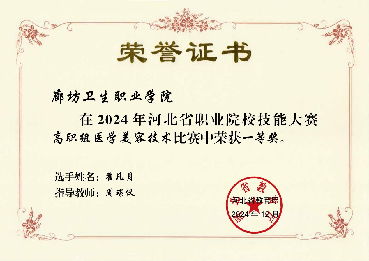 2024年河北省职业院校技能大赛高职组医学美容技术比赛一等奖优秀指导教师