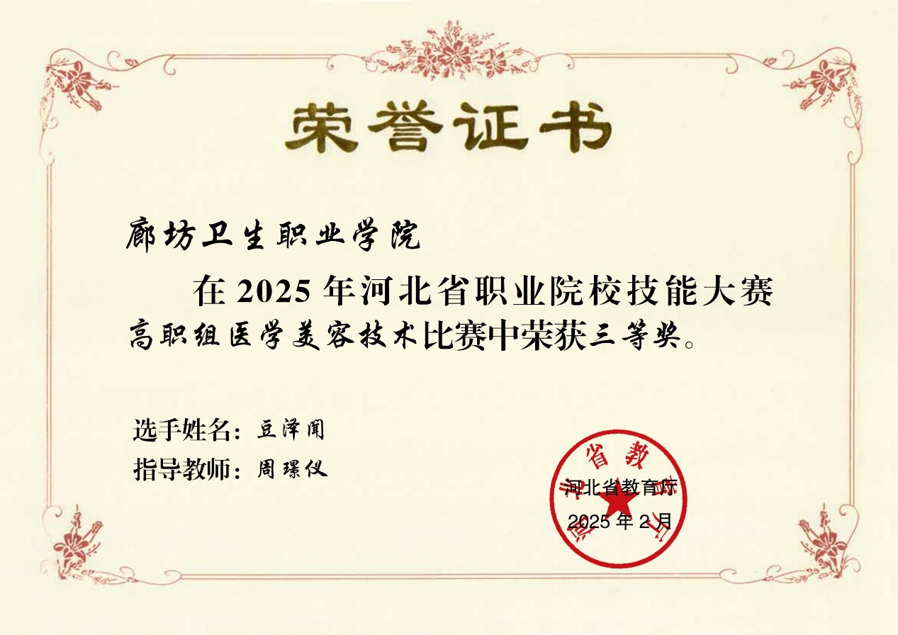 2025年河北省职业院校技能大赛高职组医学美容技术比赛三等奖指导教师