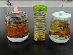 药学系师生利用所学专业知识,研究并制备了“枸杞玫瑰茶”、“菊花玫瑰山楂茶”和“茯苓红枣玫瑰茶”等中药茶饮,并经过多次尝试,确保饮品健康无害。