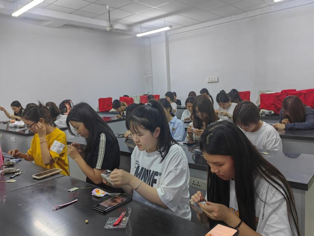我系教师以学生“第二课堂”为载体,开展了手工DIY制作艾草香囊。学生们在幽幽艾草香中认真缝制自己的香囊,既是对爱国主义精神的一种沉浸式体验,也是对传统节日文化的传承与弘扬,同时,也把专业知识灵活运用到文化创新中去,收到良好的效果。