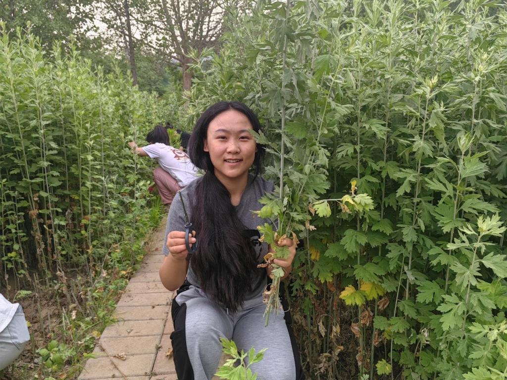 6月7日清晨,药学系部分老师带领系部学生进入药用植物园采收割艾蒿。
