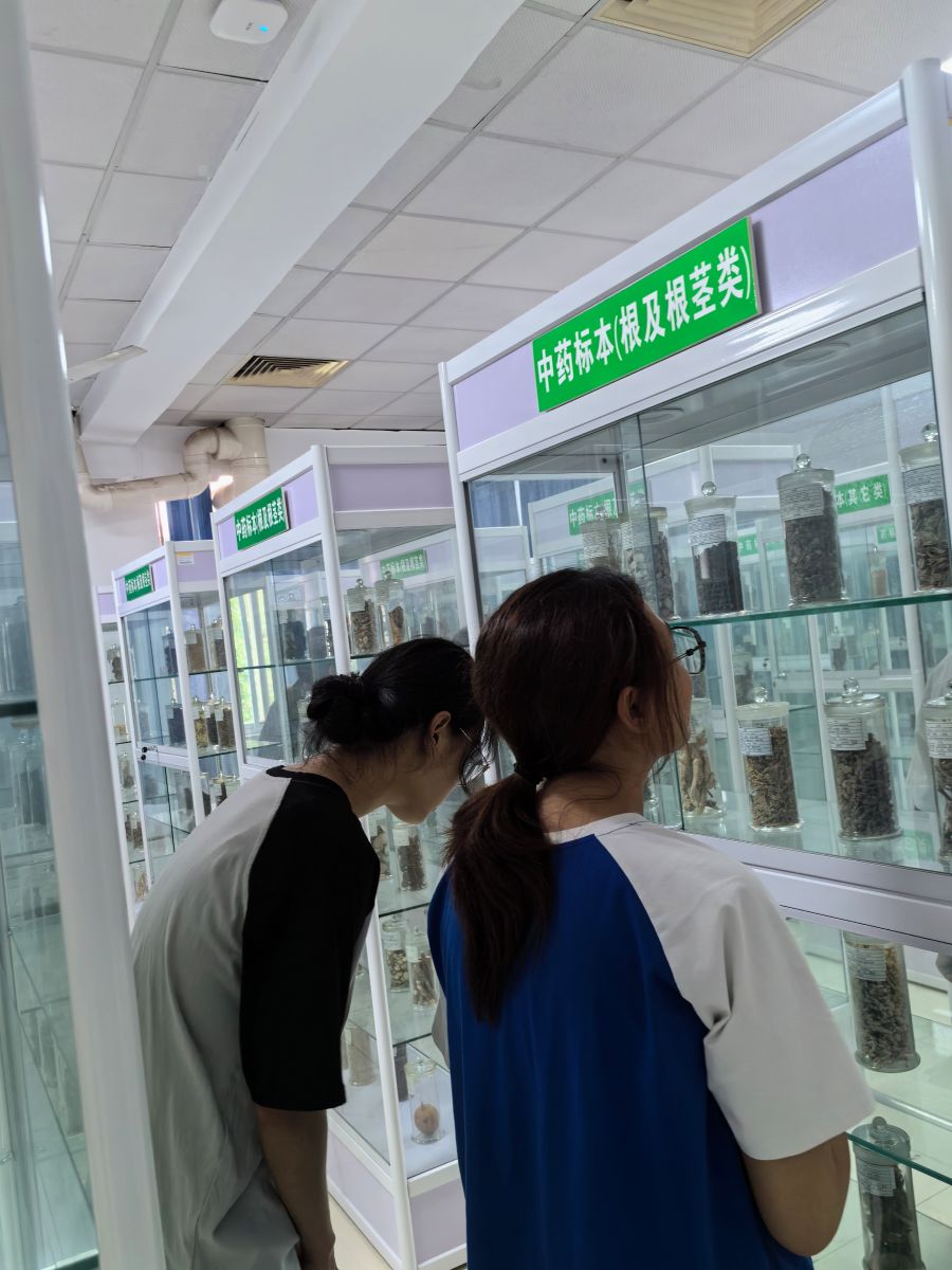 参观期间,同学们通过一看中药外表,二闻中药味道,三辨中药真伪,与中药进行一场零距离的亲密接触。同学们被中药的性状特征和神奇功效所吸引,进而产生了浓厚的兴趣。