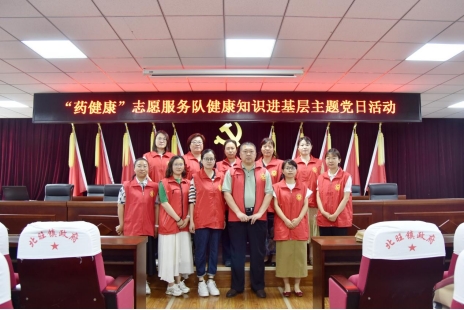 药学系“药健康”党员志愿服务队深入到广阳区北旺镇,为镇政府机关干部职工进行安全用药知识宣讲,并接受健康咨询。