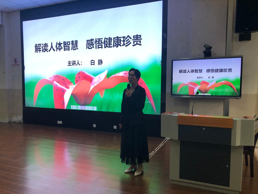 2023年11月2日下午2:10,学工处携手融创工作室在学院阶梯教室一楼西侧学术报告厅开展“珍爱生命”系列讲座之二——“解读人体智慧,感悟健康珍贵”。此次讲座特邀请医学基础部副教授白静老师担任主讲。