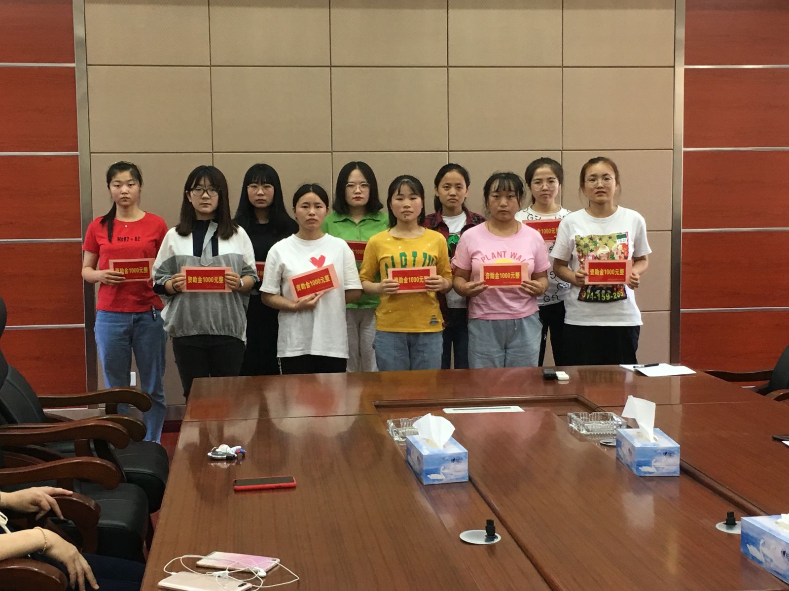 首先,刘亚萍主任向受资助的十名同学解读了本次资助活动的文件精神,让同学们切实感受到国家对教育扶贫资助的重视,对贫困大学生的关心。然后按照程序依次由各系学工科长向受资助同学颁发受助资金。