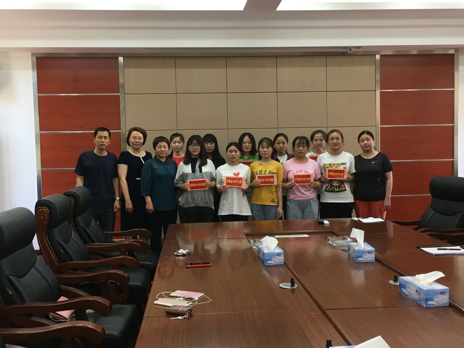 最后,庞主任对本次资助活动做了总结,同时向受资助的十名同学传递了党和国家对当代大学生的关爱及重视,提醒同学们要以此为动力,牢记“中国梦”的深刻含义,树立积极健康的人生观、价值观,努力刻苦完成学业,以自己的知识和技能来回报社会,成为社会主义新时期国家所需要的人才。