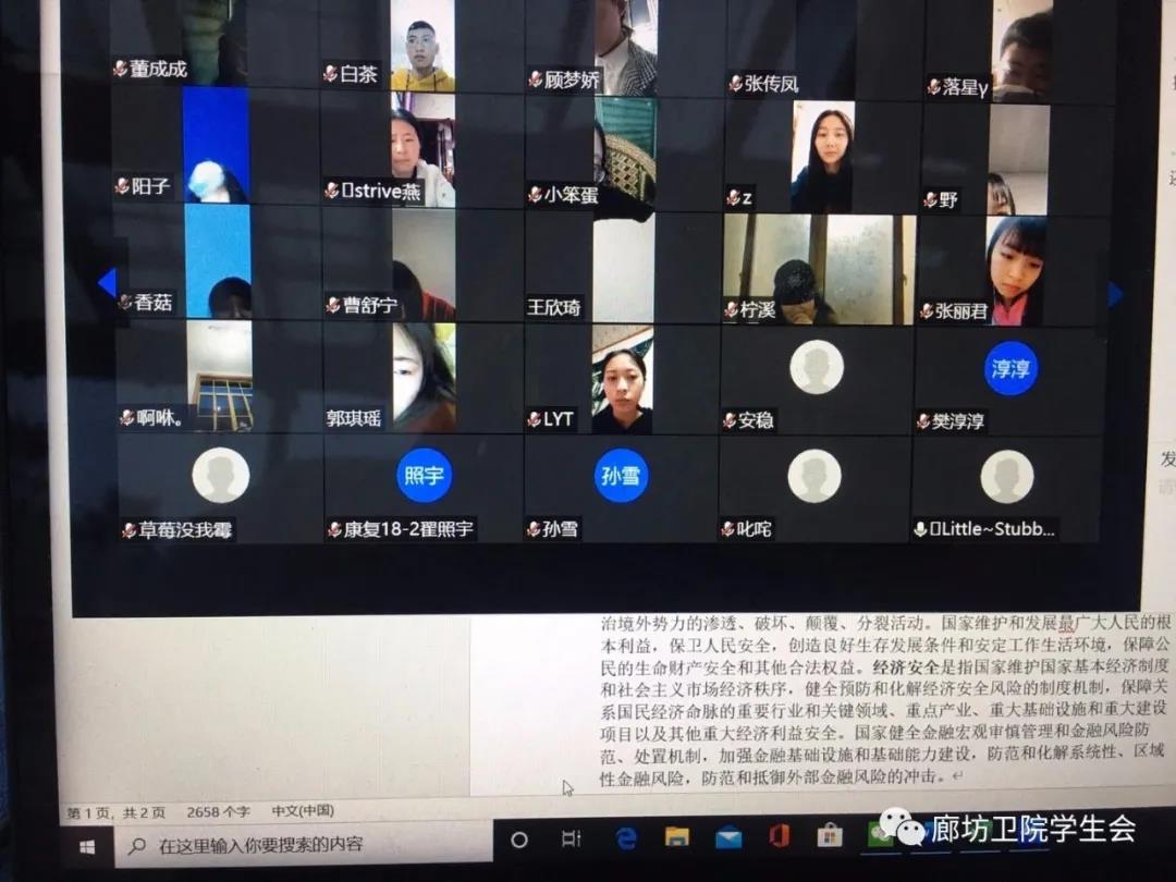 为了让全体在校大学生认识到安全教育的重要性,廊坊卫生职业学院利用网络形式对全体在线大学生进行了国家安全教育日的学习!安全教育是安全管理工作的重要环节,是提高全员的安全意识,安全管理水平和防止事故发生,是提高全员安全素质,实现安全生产的基础。通过安全教育,提高学生和教职工搞好安全工作的责任感和自觉性,增强安全意识,掌握安全生产的科学知识,不断提高安全管理水平和安全操作水平,增强自我防护能力。