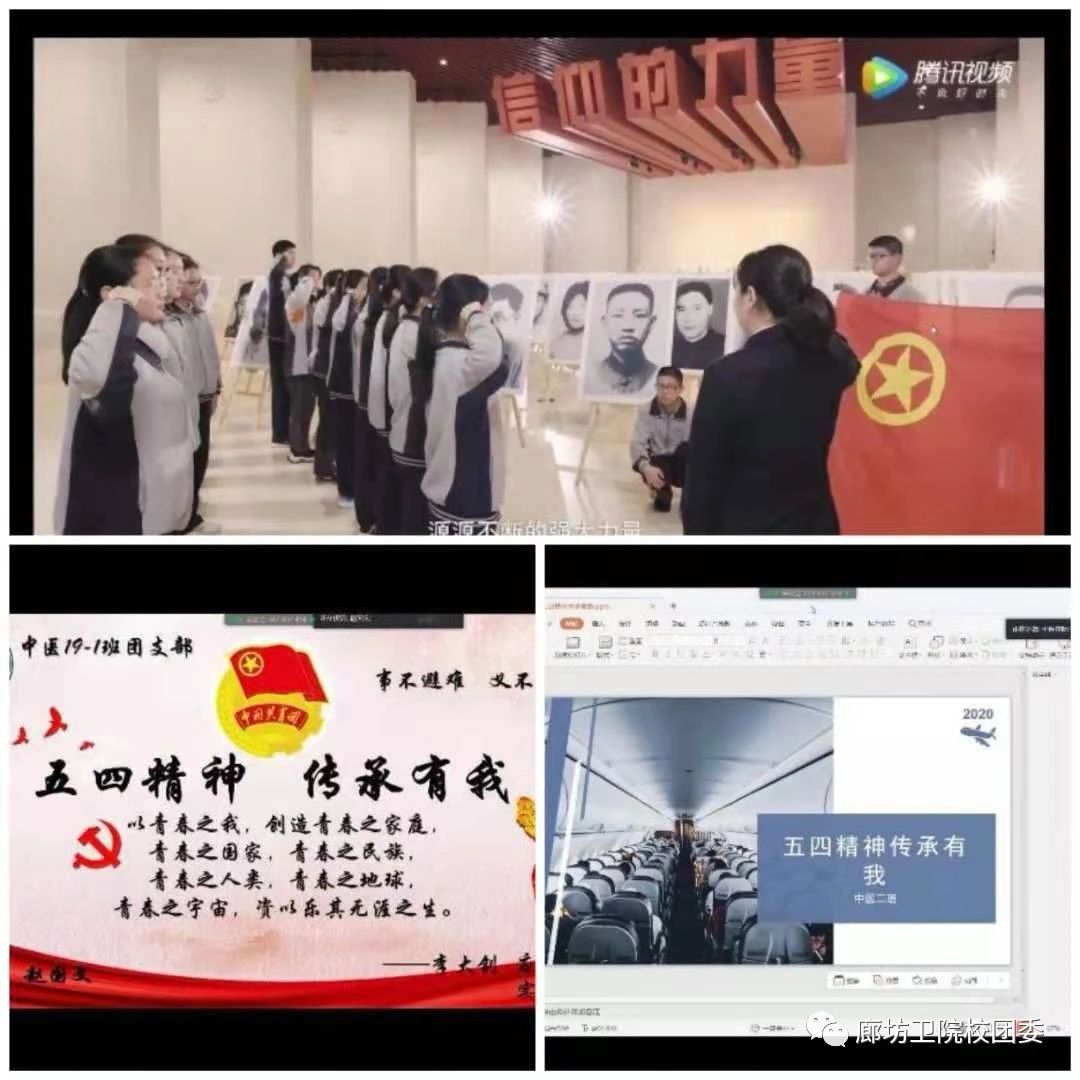 光阴似箭,岁月如梭,弹指一挥间,“五四”运动距今已有一百零一年的历史了。为了更好的学习五四文化,传承五四精神,廊坊卫生职业学院于4月30日组织全院团支部开展了以“五四精神,传承有我”为主题的团日活动。五四精神发迹于新文化运动,它代表着新文化和旧文化的碰撞,是新民主主义革命与旧民主主义革命的分水岭。是一群意气风发,忠贞爱国的有志青年为了驱逐黑暗,为了祖国的独立和富强,用热血和生命谱写的一曲壮丽的青春之歌。这不正是我们青少年所应该具备的无私奉献的精神吗?正是因为有那些为国奉献的有志青年,才使得中华人民共和国成立,才有了我们今天的幸福安稳的生活。少年强则国强,少年智则国智。当代青少年便是祖国的未来,是祖国寄托希望的火苗,是中国人的骄傲。