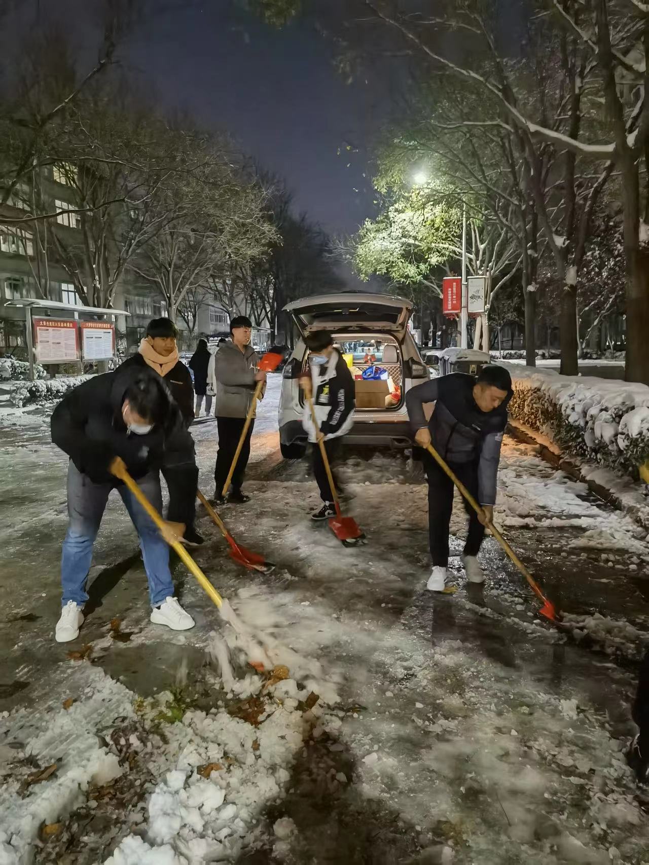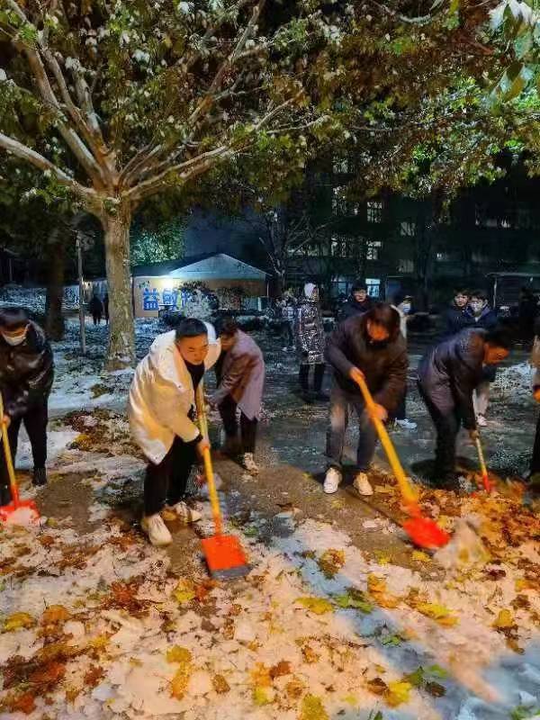 朔风凌冽,雪花飞舞,纷纷扬扬的大雪下了一夜,路面上已经有了厚厚一层。他们用双手拿起沉重的铁锹,用力敲打路面的结冰,一铲,两铲,三铲……他们的脸上冻得通红,双手也早已没有了知觉,但是心中为师生办实事的心是暖洋洋的,哪怕再冷也是值得的!