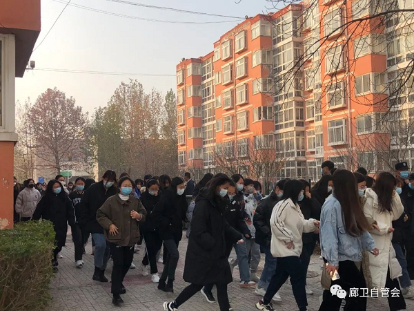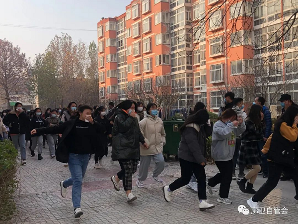 为帮助同学们树立消防安全意识,了解如何预防火灾的发生,如何报警,如何在火灾中自救、互救,提高同学们的自护、自救能力,由我院护理系主办,自管会协办于2021年11月17日下午精心策划和周密部署制定了详细的演练方案,明确了注意事项,进行了消防逃生演练。