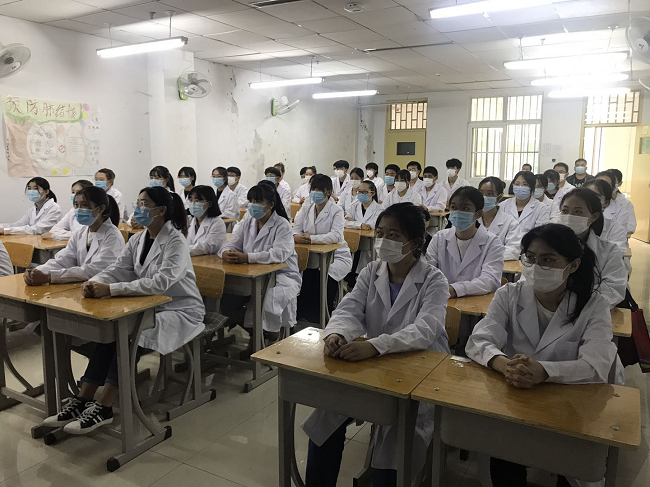 班会首先由在疫情防控中表现突出,受到共青团石家庄市长安区委员会表扬的篙春宇同学分享了自己的在抗疫志愿服务中的经历,并表示会继续努力学习,将来为我国的医学事业贡献自己的力量。之后同学们踊跃发言,感谢老师们在疫情期间的辛苦付出,更提出要向钟南山院士学习,更加坚定了同学们从医的信心和决心。