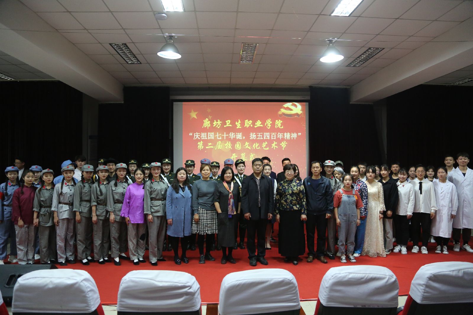 为迎接祖国七十华诞,激励我院青年大学生继承和发扬百年五四运动的光荣传统,加强对全院师生的理想信念教育,学管中心举办的以“庆祖国七十华诞,扬五四百年精神”为主题的廊坊卫生职业学院第二届大学生校园文化艺术节于2019年4月17日下午在学术报告厅举行开幕式,学院领导及相关处室主任、老师参加了此次活动。