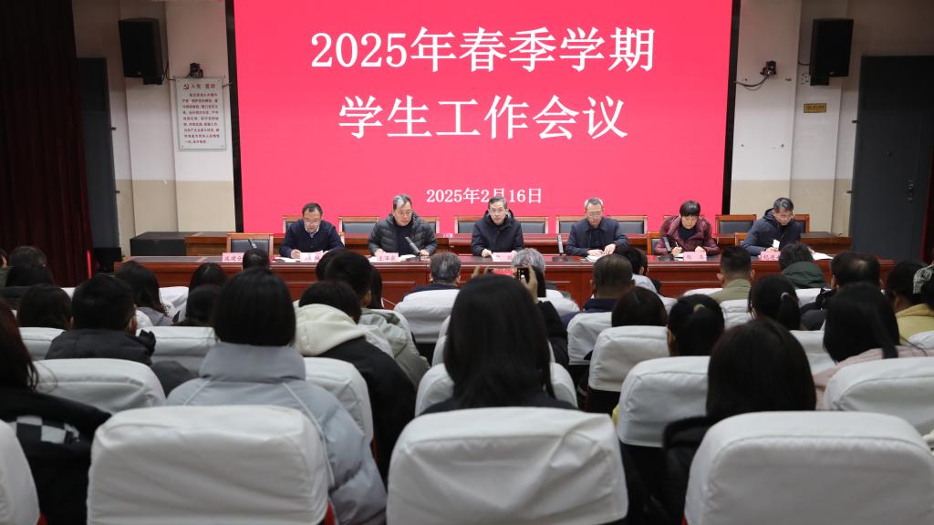 学工处处长庞建仓对2025年春季学期学生工作进行安排部署;纪委书记秦维城做党风廉政建设讲话,并对学工系统廉洁自律开展工作提出有关要求;党委副书记王泽泉传达学校2025年春季学期开学工作的有关精神并做总结讲话。