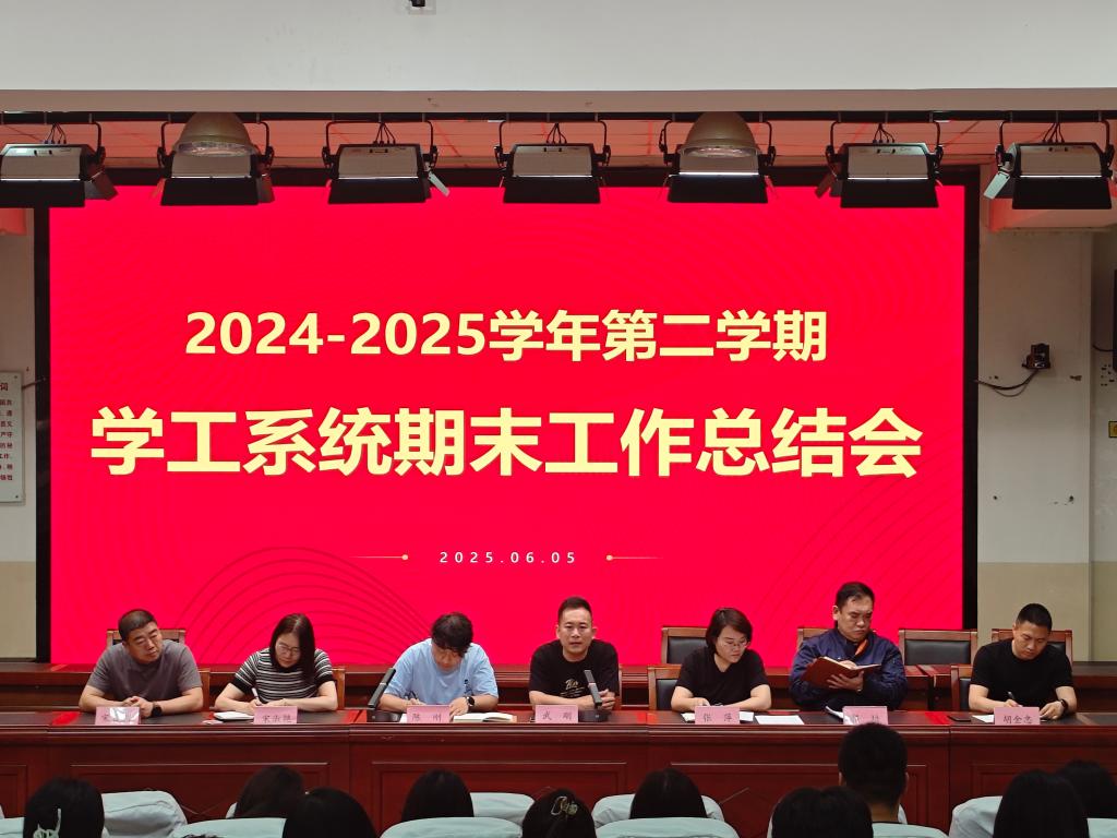 6月5日下午,学生工作处组织召开2024-2025学年度第二学期学工系统期末工作总结会,招生就业办公室主任武刚、学生工作办公室、团委负责人陈刚出席会议并讲话,各系学工科科长及全体辅导员参会。
