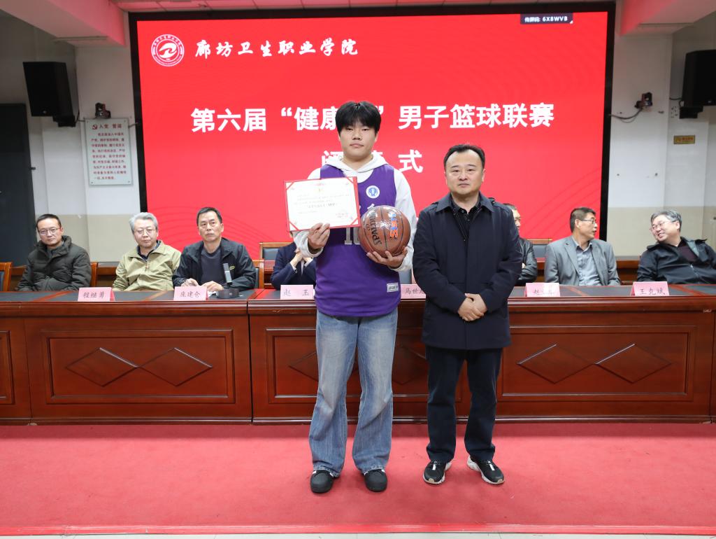 10月30日,廊坊卫生职业学院第六届“健康杯”男子篮球比赛闭幕式在学术报告厅隆重举行。党委副书记马世旭、副院长赵玉、学生工作处处长庞建仓、公共基础部负责人、五系书记、主任、学工科长、全体辅导员、运动员、裁判员参加闭幕式。本次开幕式由学生工作处处长庞建仓主持。